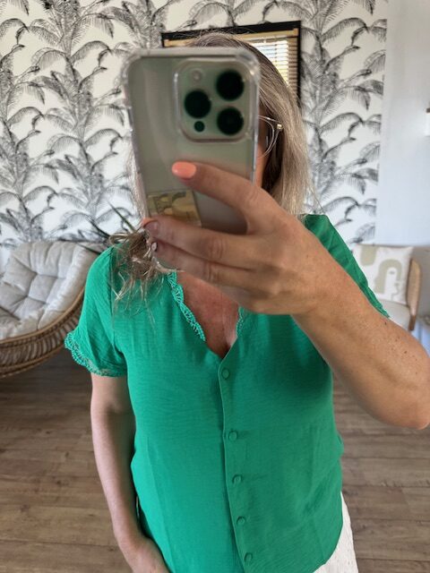 La blouse verte col V : une idée cadeau tendance