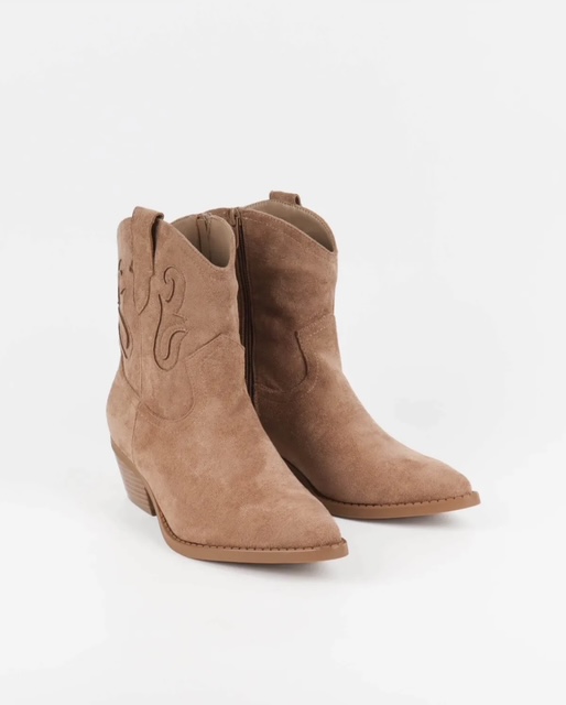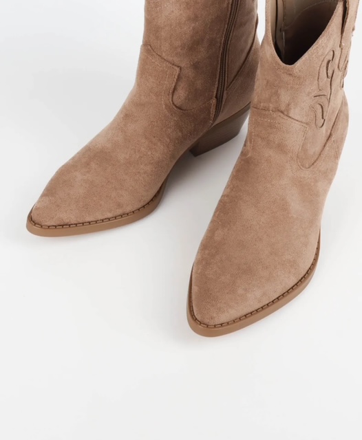 Apportez une touche cowgirl chic à vos looks avec ces bottines western en effet daim beige.