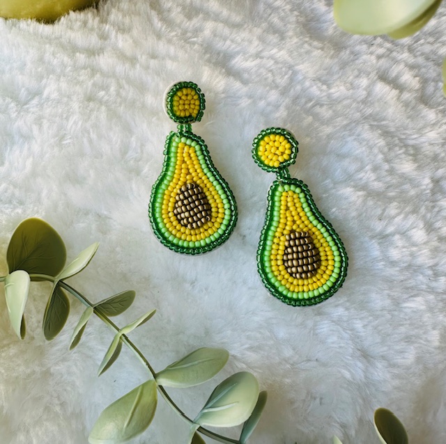 Apportez une touche fun et décalée à votre look avec ces boucles d’oreilles en forme d’avocat ornées de petites perles délicates.