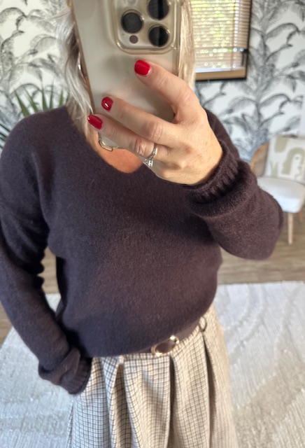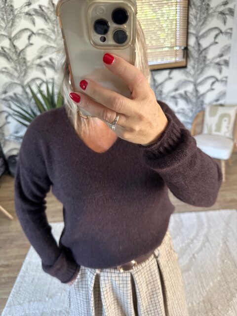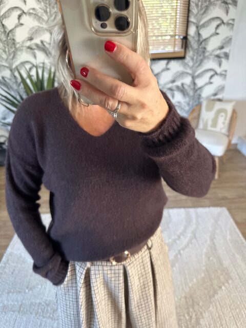 Mes conseils look pour porter le PULL MARRON COL V FEMME