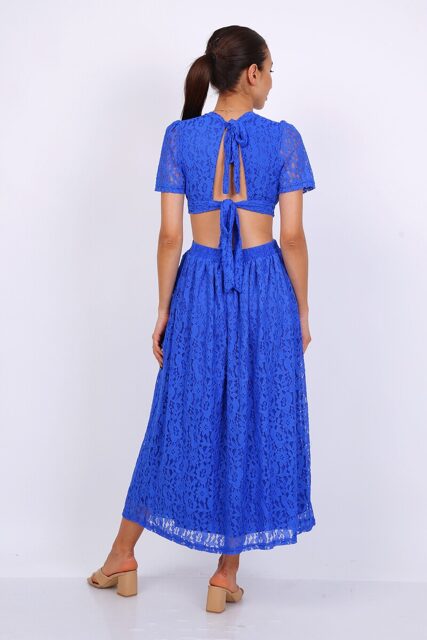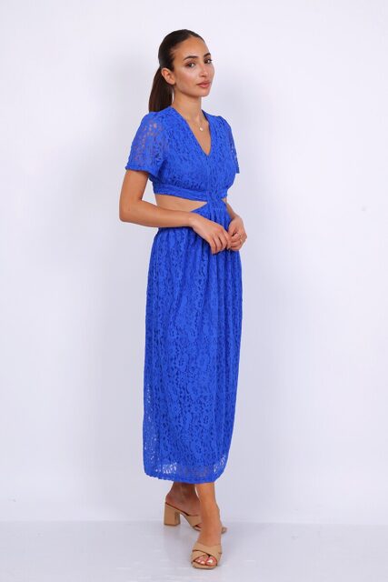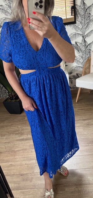 Commandez dès maintenant votre robe bleue en dentelle pour un look chic et tendance.