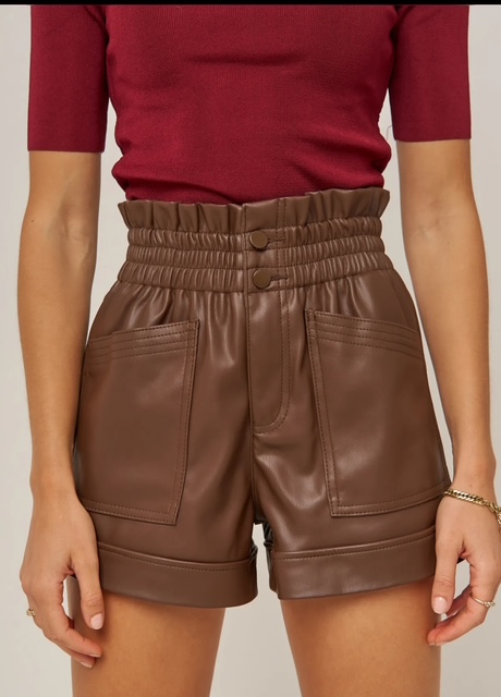 Adoptez un style audacieux et ultra-tendance avec ce short taille haute en simili cuir marron pour femme.
