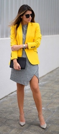 L’association de la couleur grise avec le jaune est parfaite pour celles qui souhaitent un look dynamique et moderne.