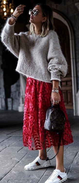 Porte une jupe à imprimés floraux avec un pull gris uni pour un équilibre parfait. Tu peux aussi opter pour une chemise à motifs géométriques sous un blazer gris pour un look moderne et professionnel.
